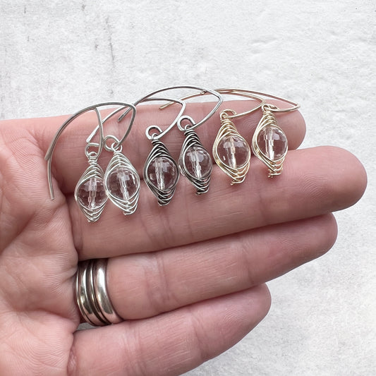 14k Goldfill Crystal Quartz Earrings | Genuine Rock Crystal Wire-wrapped Gold or Silver Dangle Earrings