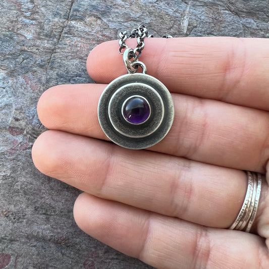 Amethyst Sterling Silver Necklace - Amethyst Cabochon Pendant on Sterling Silver Chain