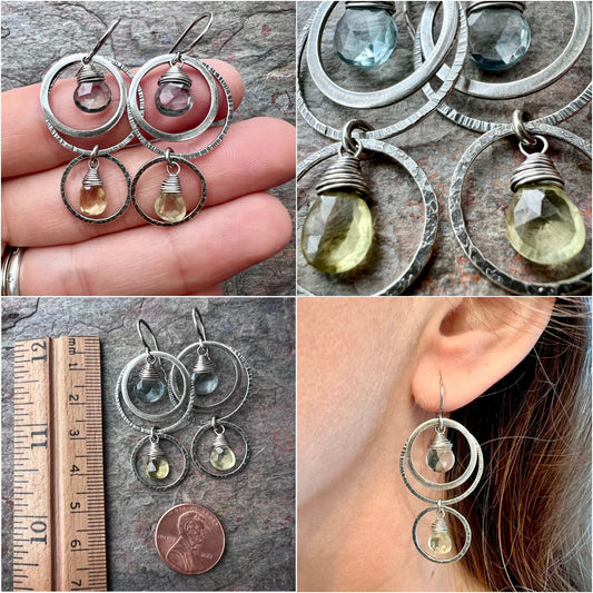 Aquamarine and Lemon Topaz Sterling Silver Earrings - Genuine Aquamarine and Lemon Topaz in Sterling Silver Circles