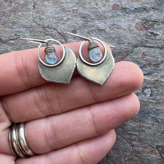 Aquamarine Sterling Silver Earrings - Genuine Aquamarine and Sterling Silver Petal Earrings