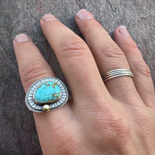 Royston Turquoise Sterling Silver Ring - One-of-a-kind Handmade Freeform Turquoise and Sterling Silver Ring - Size 10