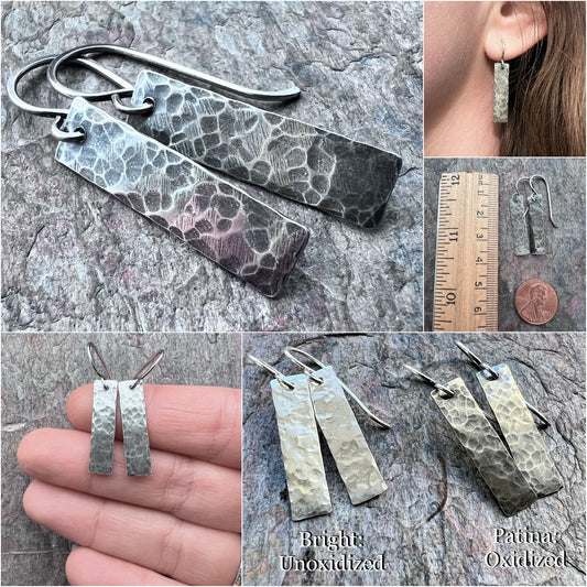 Rectangular Sterling Silver Earrings | Simple Hammered Silver Bar Dangle Everyday Earrings Handmade Jewelry