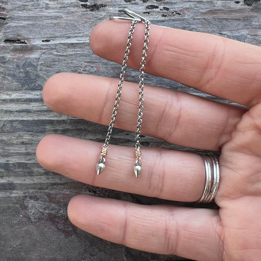 Sterling Silver and 14k Goldfill Long Drop Earrings | Mixed Metal Gold and Silver Tiny Spike on Chain Earrings