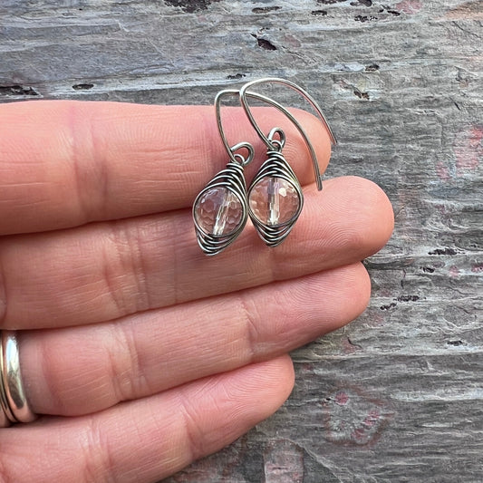 Sterling Silver Crystal Quartz Earrings | Genuine Rock Crystal Wire-wrapped Silver or Gold Dangle Earrings