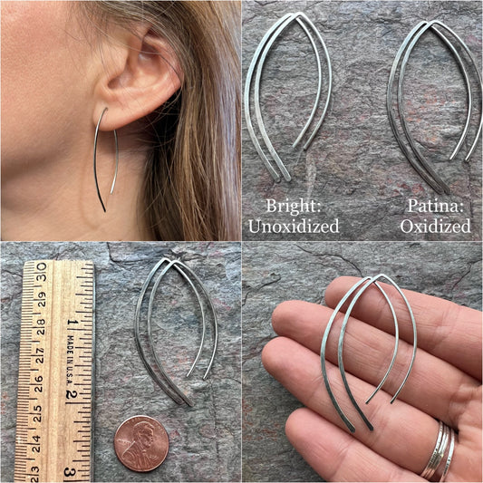 Sterling Silver Earrings Graceful Curve Earrings - Lightweight Long Sterling Silver Earrings