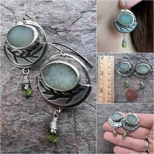 Sterling Silver Druzy and Peridot Earrings - Handmade One-of-a-kind Earrings