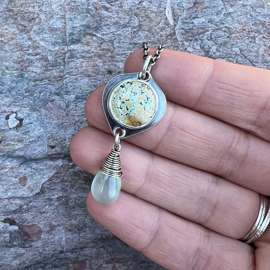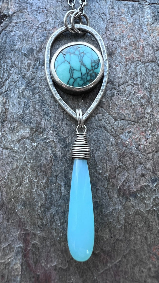 Turquoise and Chalcedony Sterling Silver Necklace - Handmade One-of-a-kind Pendant on Sterling Silver Chain