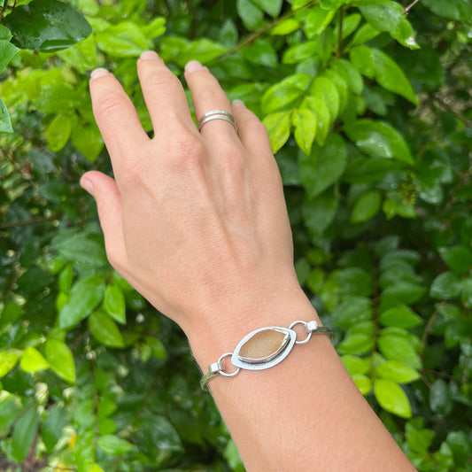 Opal Sterling Silver Bracelet - Handmade Simulated Opal Cabochon and Sterling Silver Bracelet