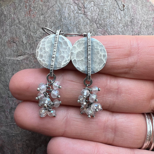 Rainbow Moonstone Sterling Silver Earrings - Rainbow Moonstone Circle and Bar Earrings