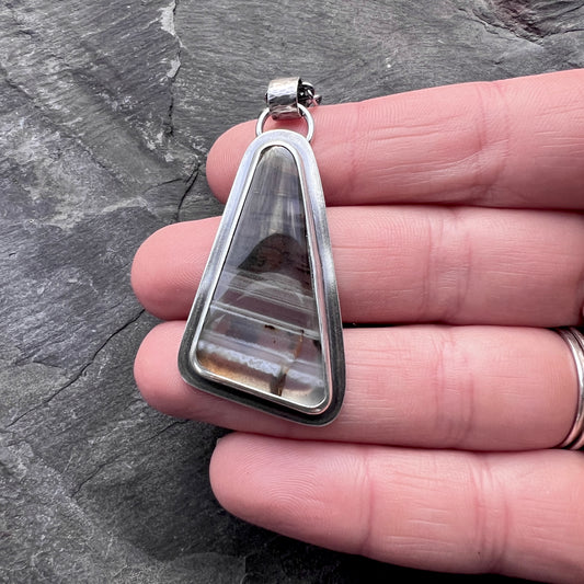 Sterling Silver Montana Agate Necklace | Brown Natural Stone Geometric Pendant