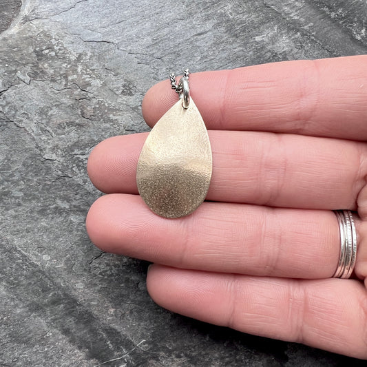 Golden Bronze Teardrop Pendant with Sterling Silver Chain | Mixed Metal Necklace