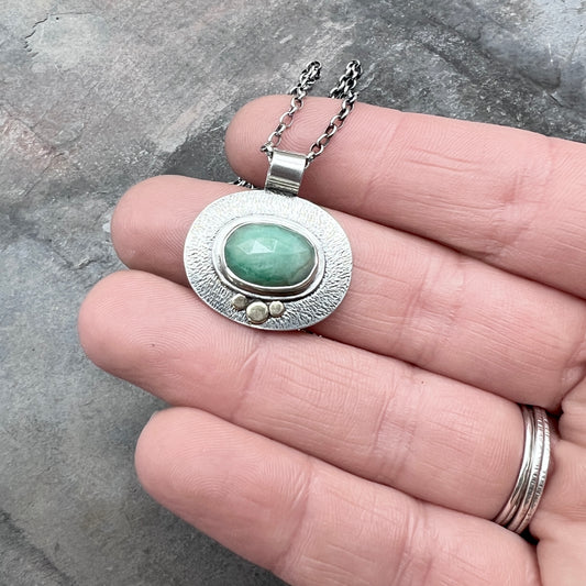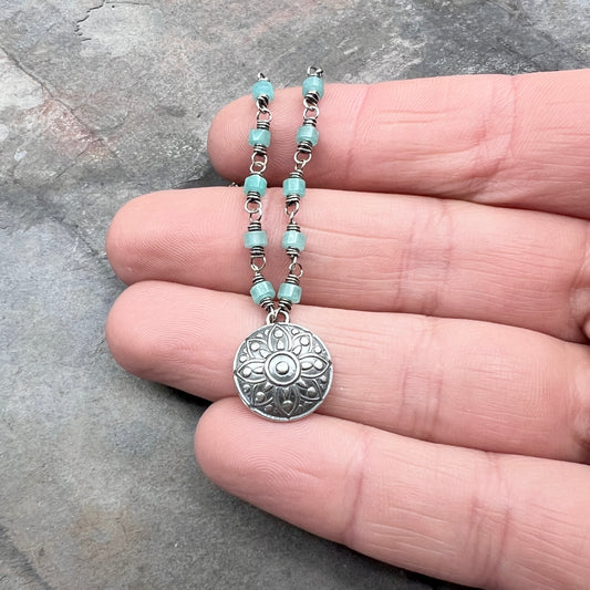 Sterling Silver Medallion and Amazonite Necklace | Natural Aqua Stones with Circle Pendant