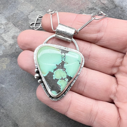 Sterling Silver Turquoise Necklace | Large Genuine Turquoise Pendant on Handmade Chain