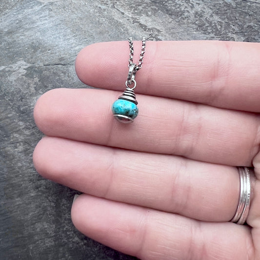 Genuine Turquoise Sterling Silver Necklace | Natural Stone Pendant on Lightweight Chain