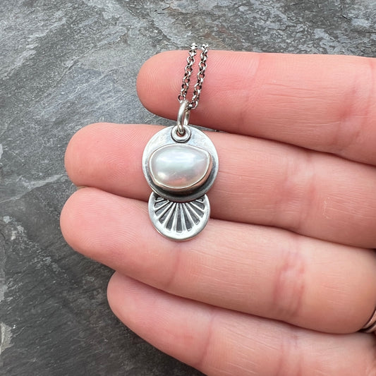 Sterling Silver Pearl Necklace | Natural Baroque Pearl Stamped Pendant
