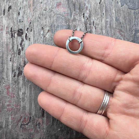 Sterling Silver Small Circle Necklace | Minimalist Organic Ring Pendant Necklace