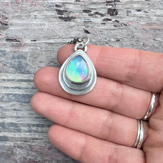 Sterling Silver Aurora Opal Teardrop Pendant Necklace -Stone 2