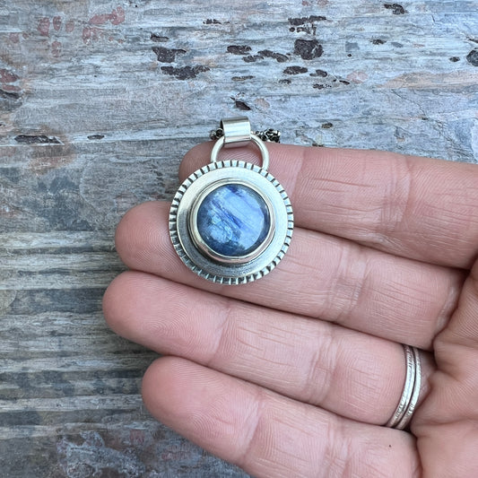 Sterling Silver Kyanite Necklace | Natural Stone Round Cabochon Pendant