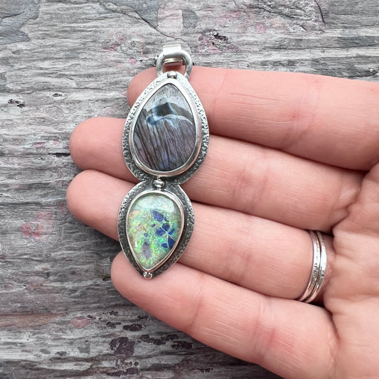 Sterling Silver Labradorite and Monarch Opal Pendant Necklace