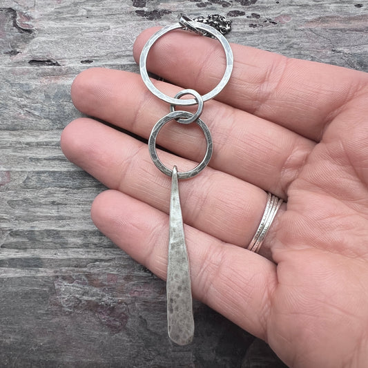 Sterling Silver Hammered Rings Necklace | Silver Circles with Long Drop Pendant