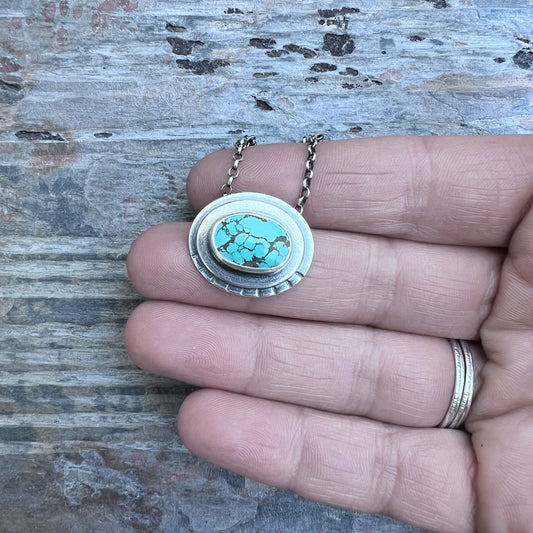 Sterling Silver Genuine Turquoise Necklace | Natural Stone Layered Oval Pendant