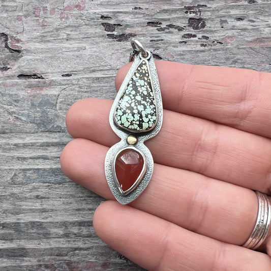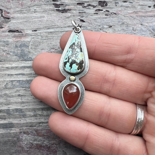 Genuine Turquoise and Carnelian Sterling Silver Necklace | One-of-a-kind Teardrop Pendant (#2)