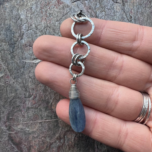 Sterling Silver Blue Kyanite Necklace Natural Stone Hammered Silver Pendant Long Necklace