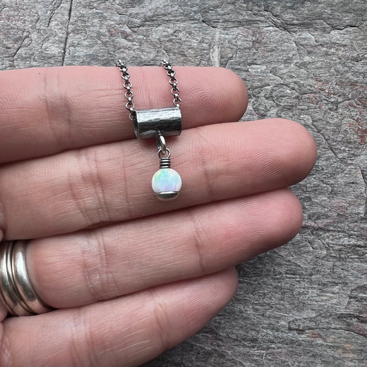 Sterling Silver and Simulated Opal Necklace - Simulated Opal Pendant on Sterling Silver Chain