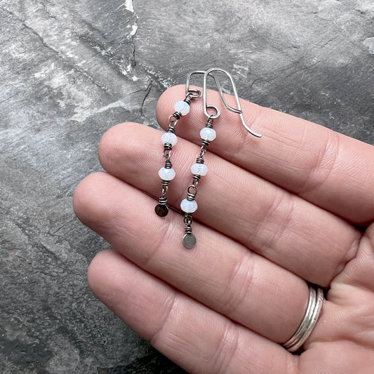 Sterling Silver Opalite Earrings | Beaded Opalite Long Dangles