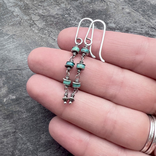 Genuine Turquoise Sterling Silver Earrings | Natural Stone Wire-wrapped Beads Dangle Earrings