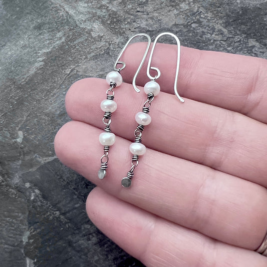 Sterling Silver Pearl Earrings | Genuine Pearl Wire-wrapped Long Dangles