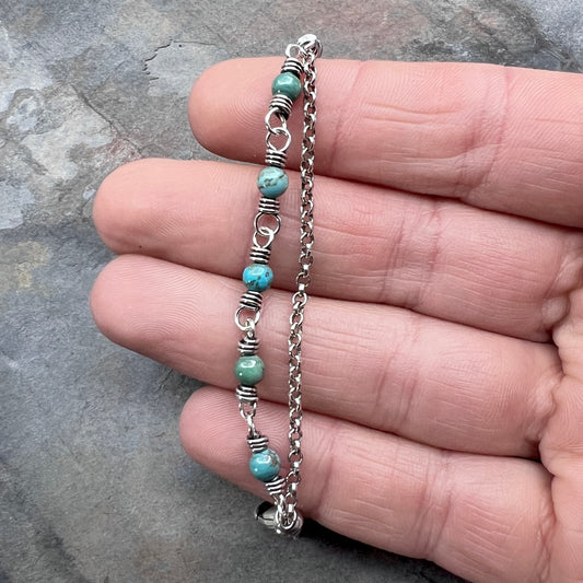 Sterling Silver Turquoise Bracelet | Genuine Turquoise Wire-wrapped Chain Bracelet