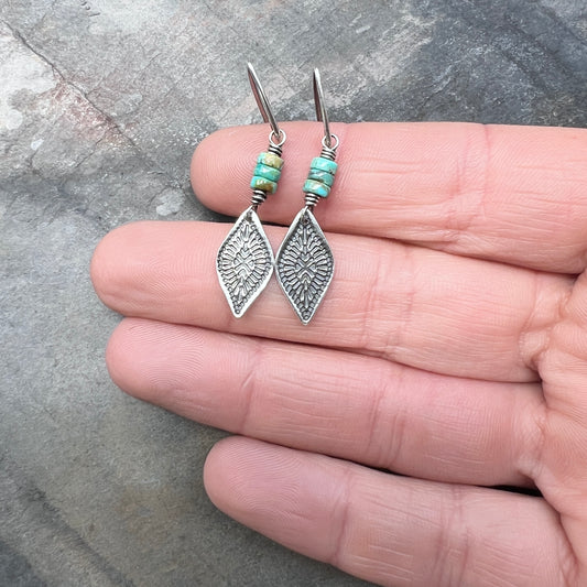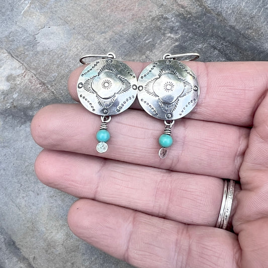 Genuine Turquoise Sterling Silver Earrings | Natural Stone Beads with Stamped Silver Dangle