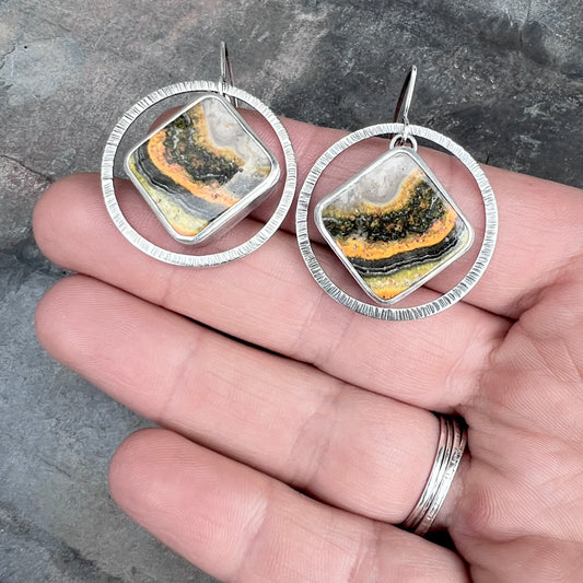 Sterling Silver Bumble Bee Jasper Earrings | Natural Stone Statement Earrings