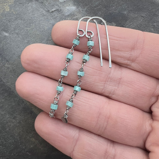 Sterling Silver Amazonite Earrings | Aqua Natural Stone Long Dangle Earrings