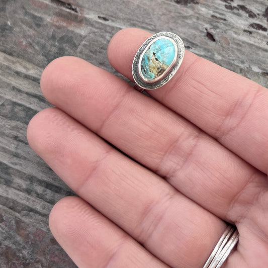 Sterling Silver Turquoise Ring | Genuine Natural Turquoise Cabochon Ring - Size 7