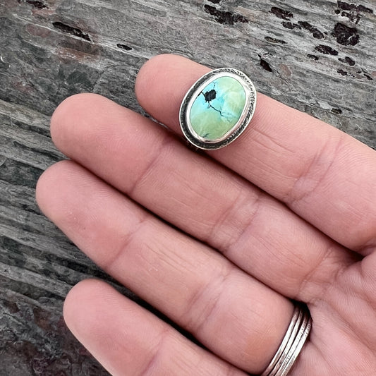 Sterling Silver Turquoise Ring | Genuine Natural Turquoise Cabochon Ring - Size 8.25