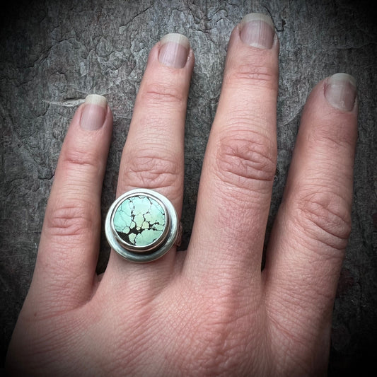 Royston Turquoise Sterling Silver Ring - One-of-a-kind Handmade Freeform Turquoise and Sterling Silver Ring - Size 10