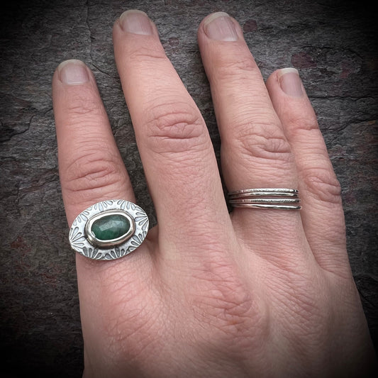 Emerald Sterling Silver Ring - Handmade Genuine Emerald One-of-a-kind Ring - Size 8.5