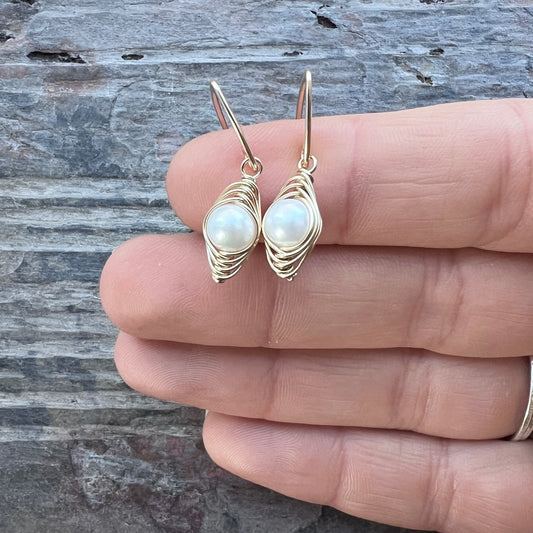 14K Goldfill Pearl Earrings | Genuine Pearl Gold Filled Wire-wrapped Dangle Earrings