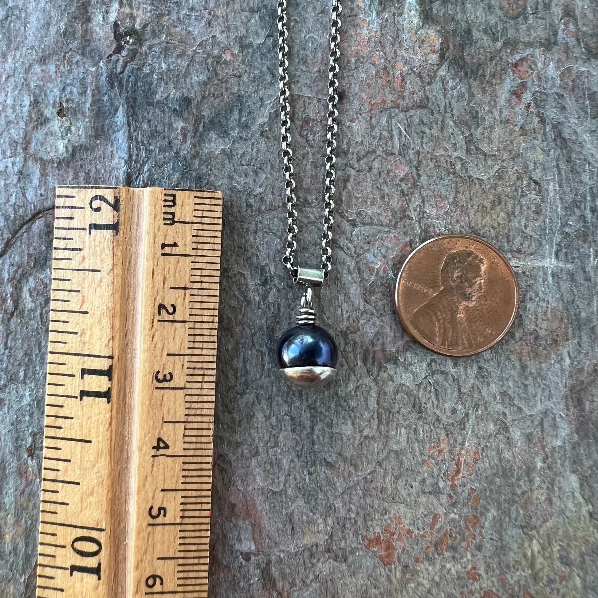 Black Pearl and Sterling Silver Necklace - Genuine Pearl Pendant on Sterling Silver Chain