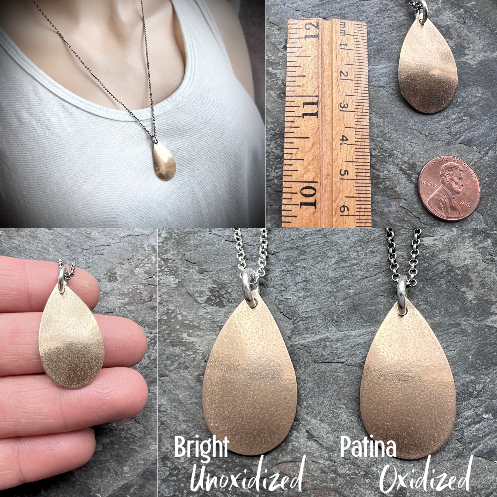 Golden Bronze Teardrop Pendant with Sterling Silver Chain | Mixed Metal Necklace