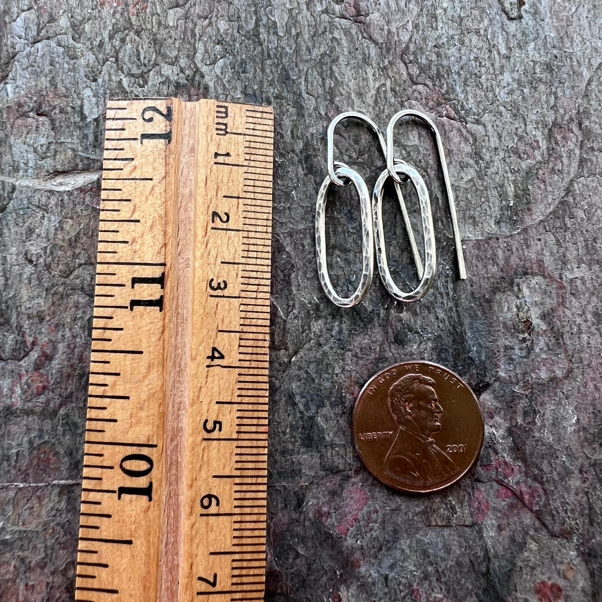 Long Link Sterling Silver Earrings Minimalist Solid Silver Hammered Dangle Drop Earrings