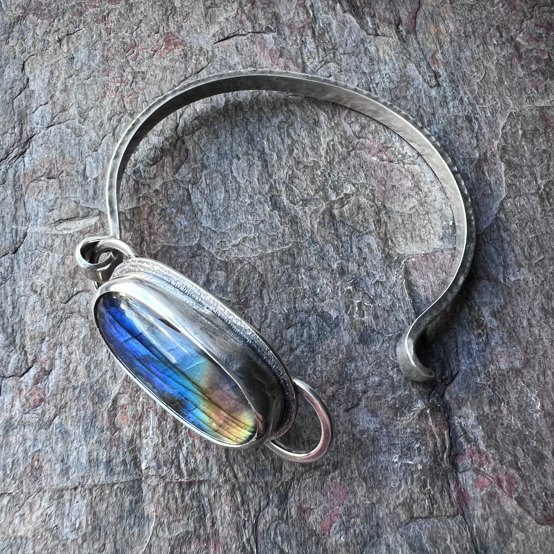 Sterling Silver Labradorite Bracelet One of a kind Natural Stone Cuff Bracelet