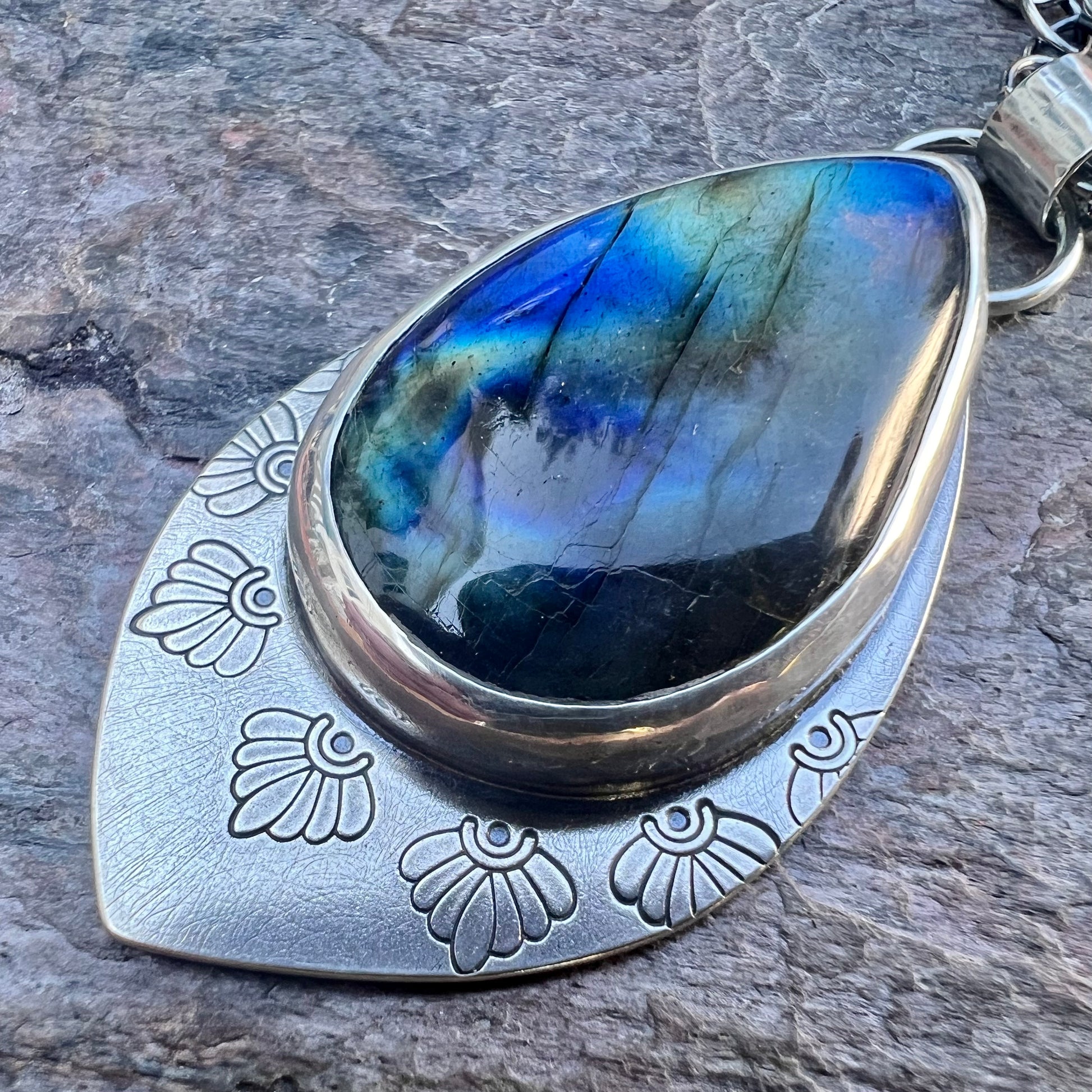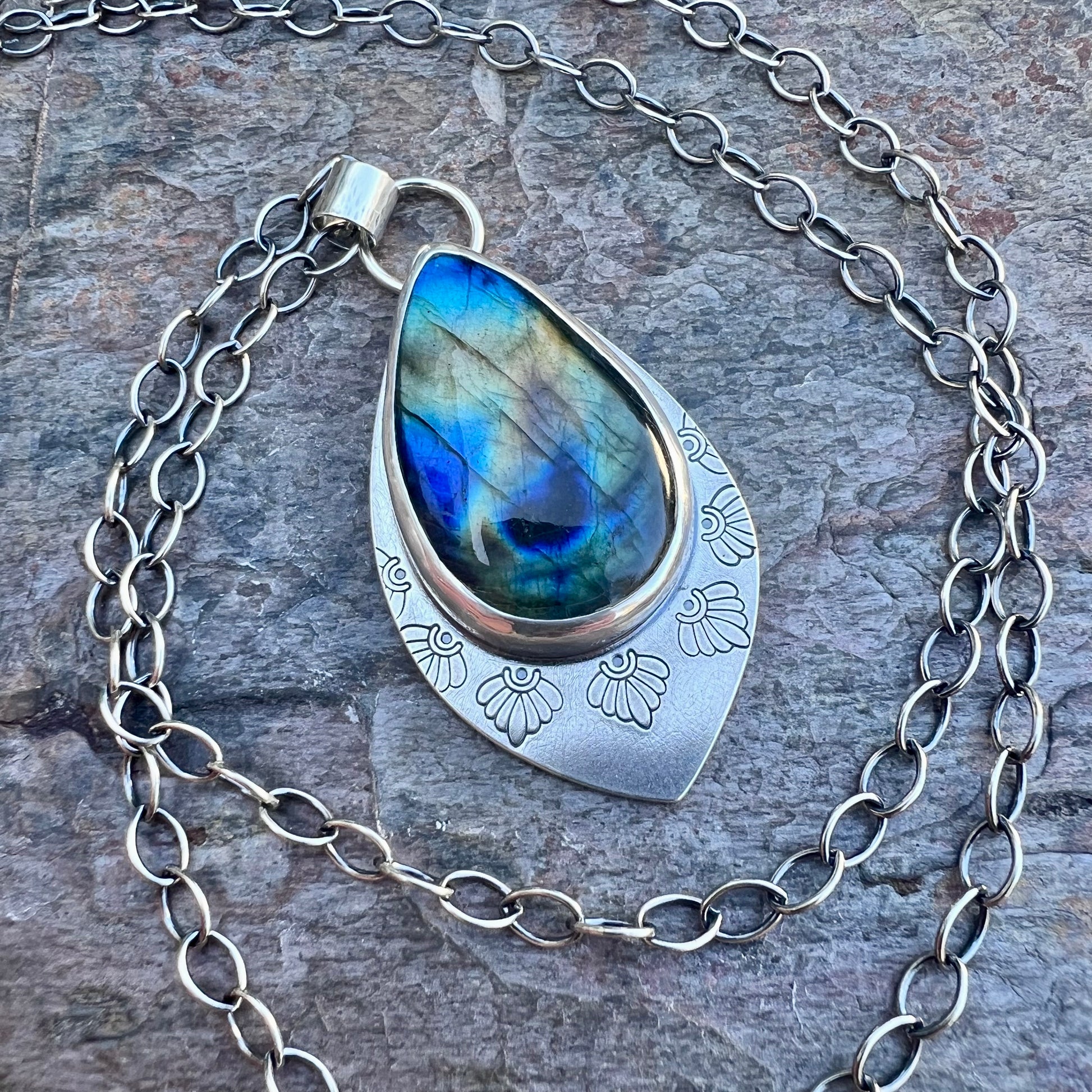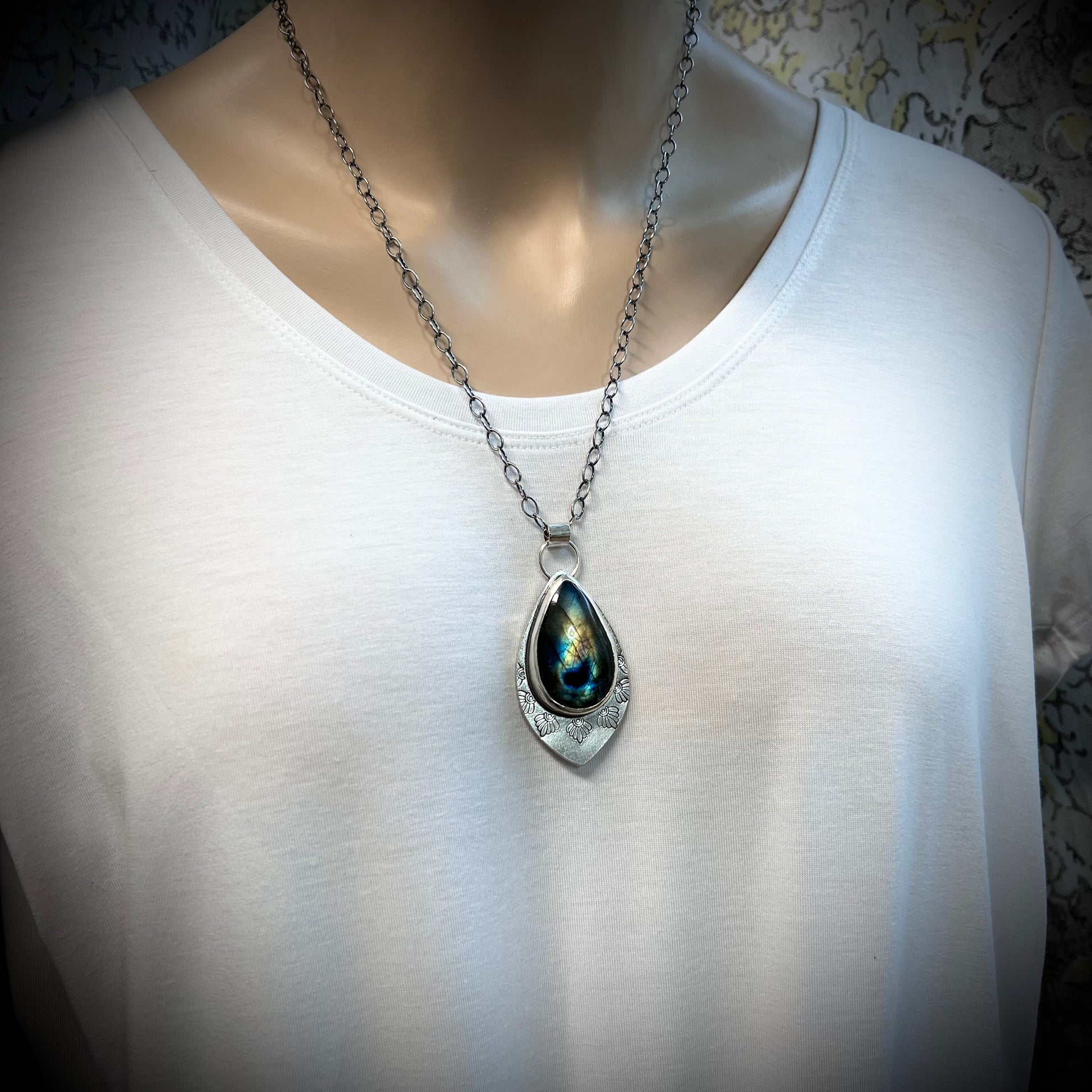 Labradorite Sterling Silver Necklace - Handmade One-of-a-kind Pendant on Sterling Silver Chain