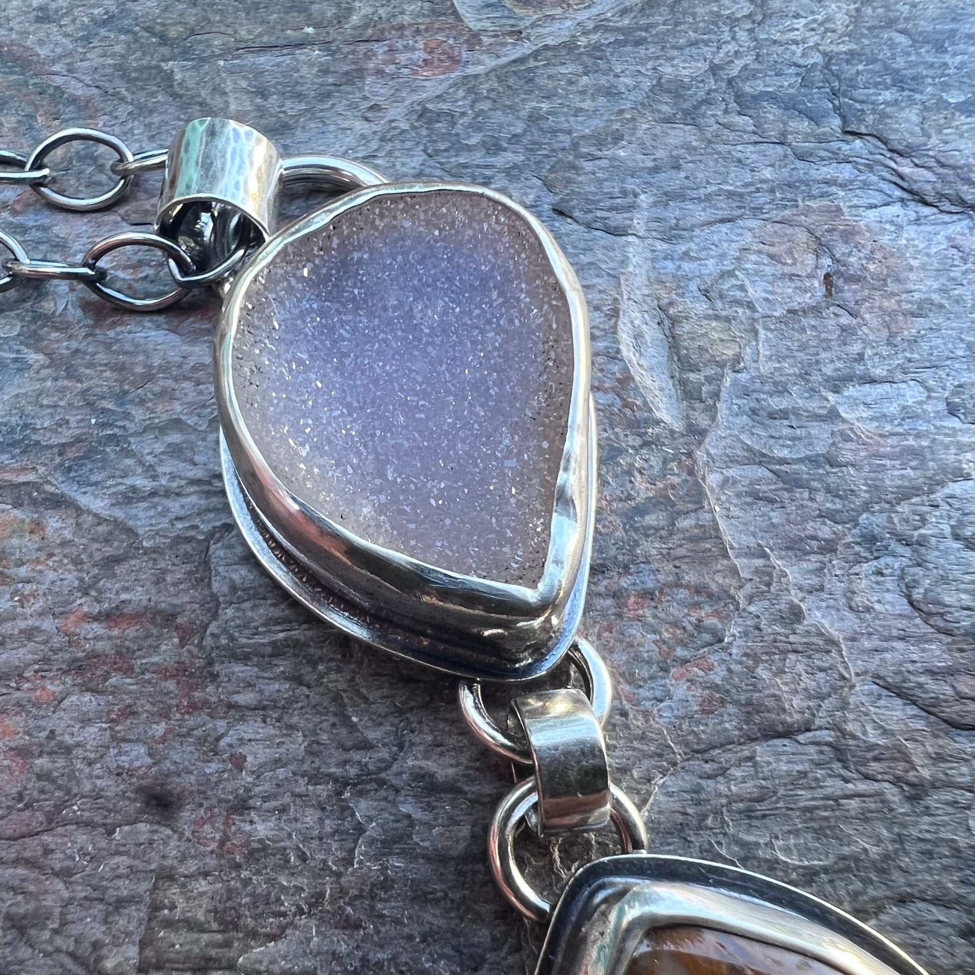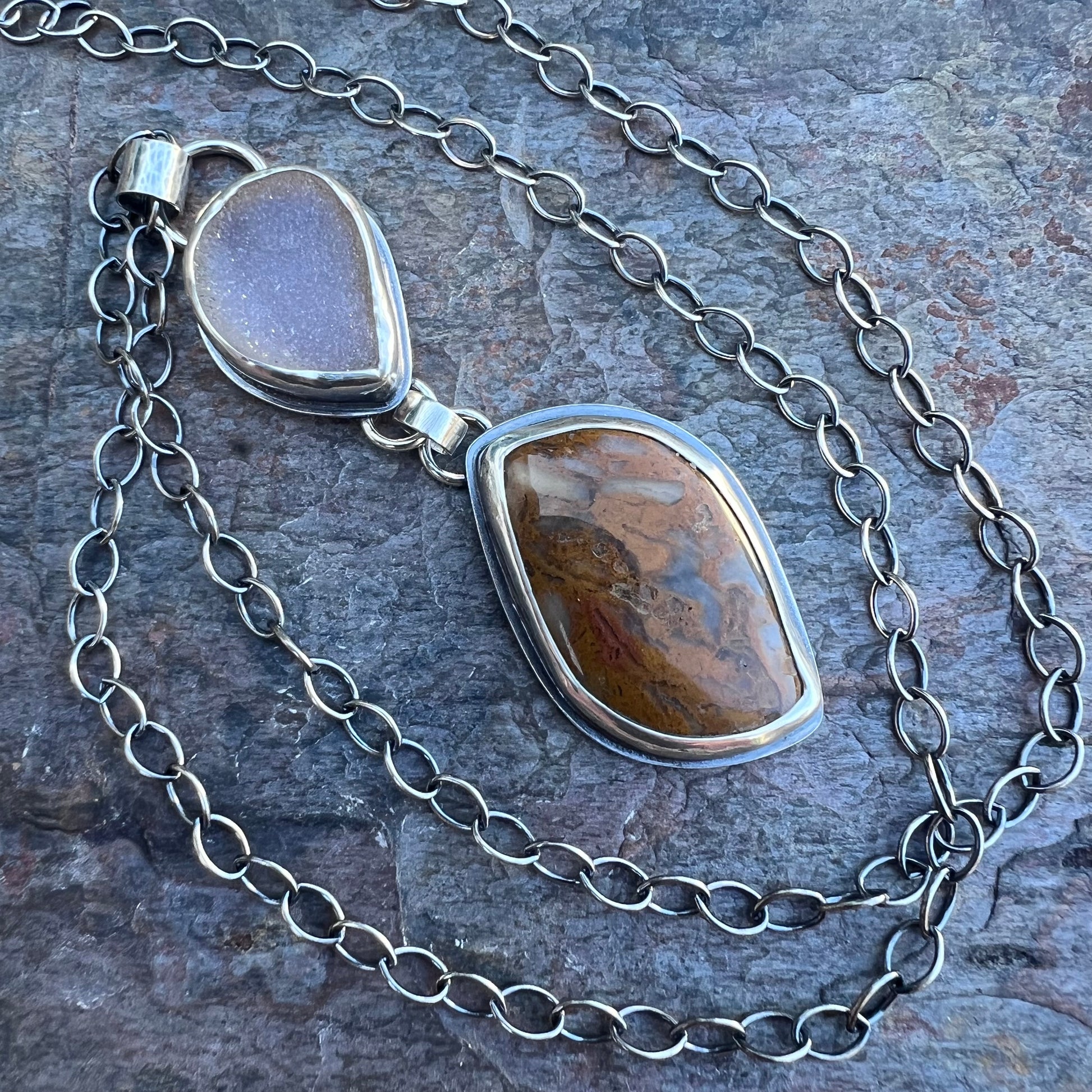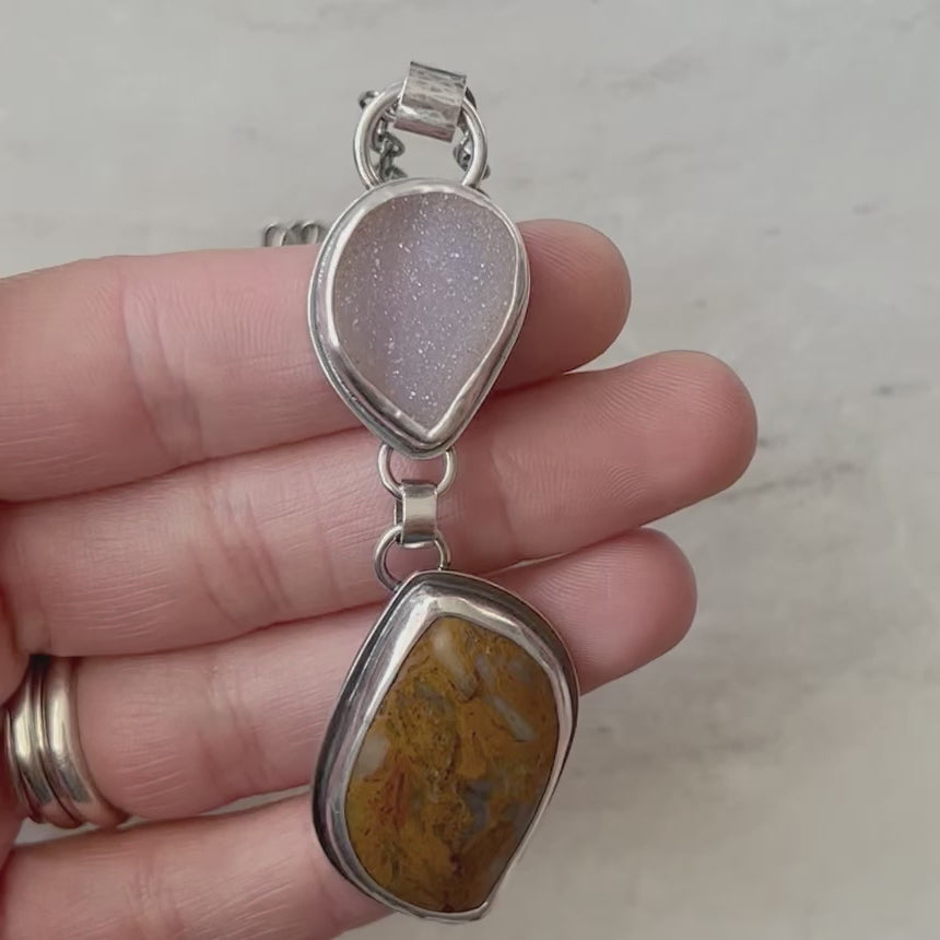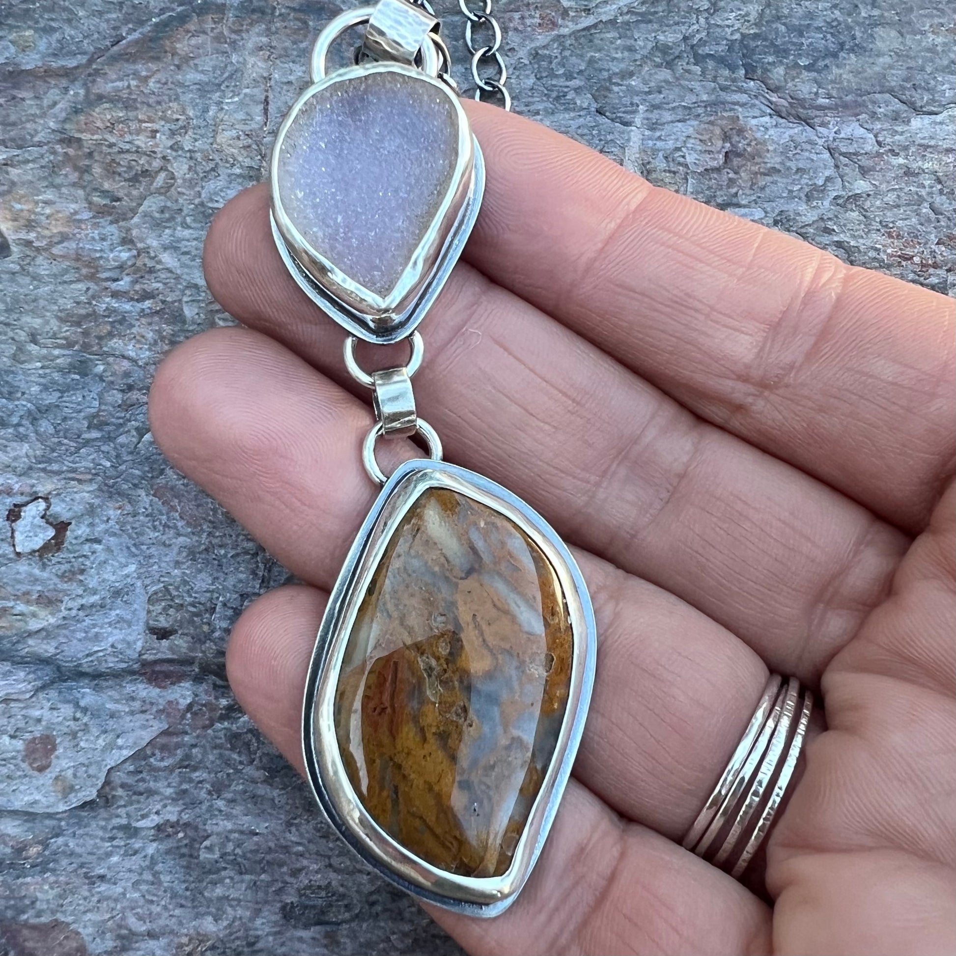 Sterling Silver Ocean Jasper and Druzy Necklace - Handmade One-of-a-kind Pendant on Sterling Silver Chain