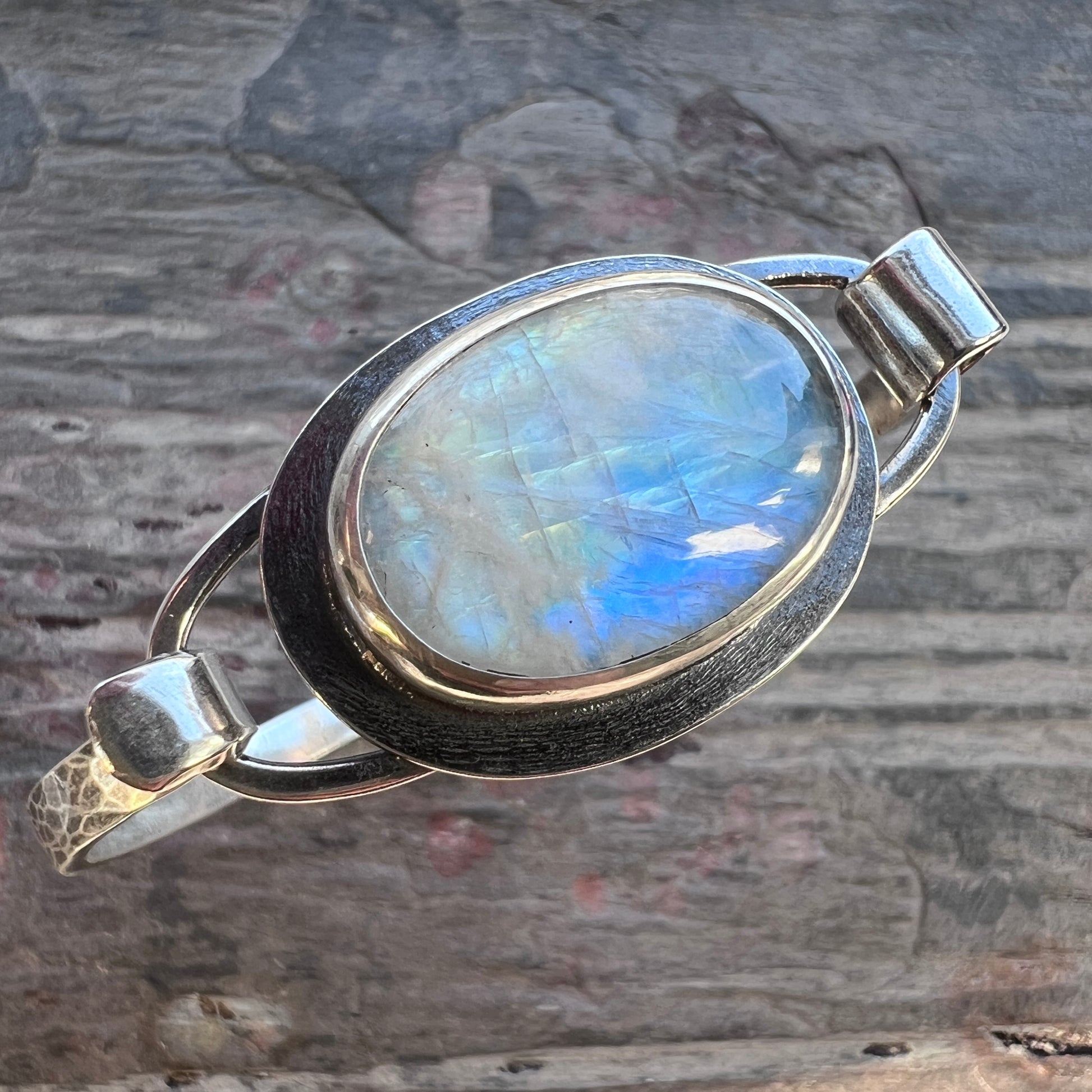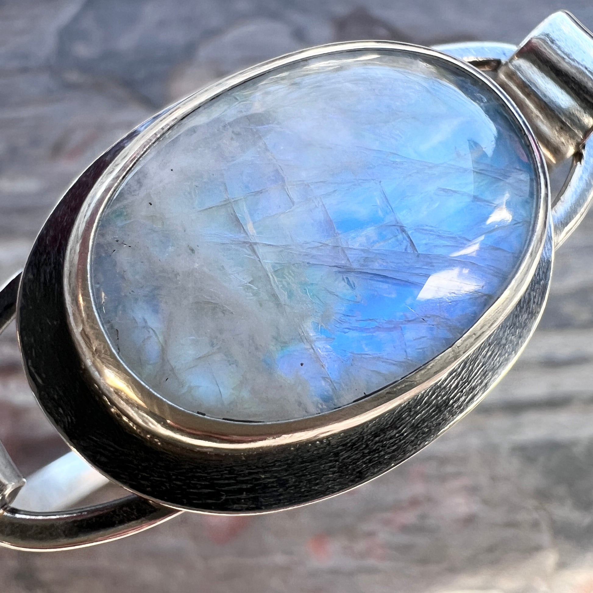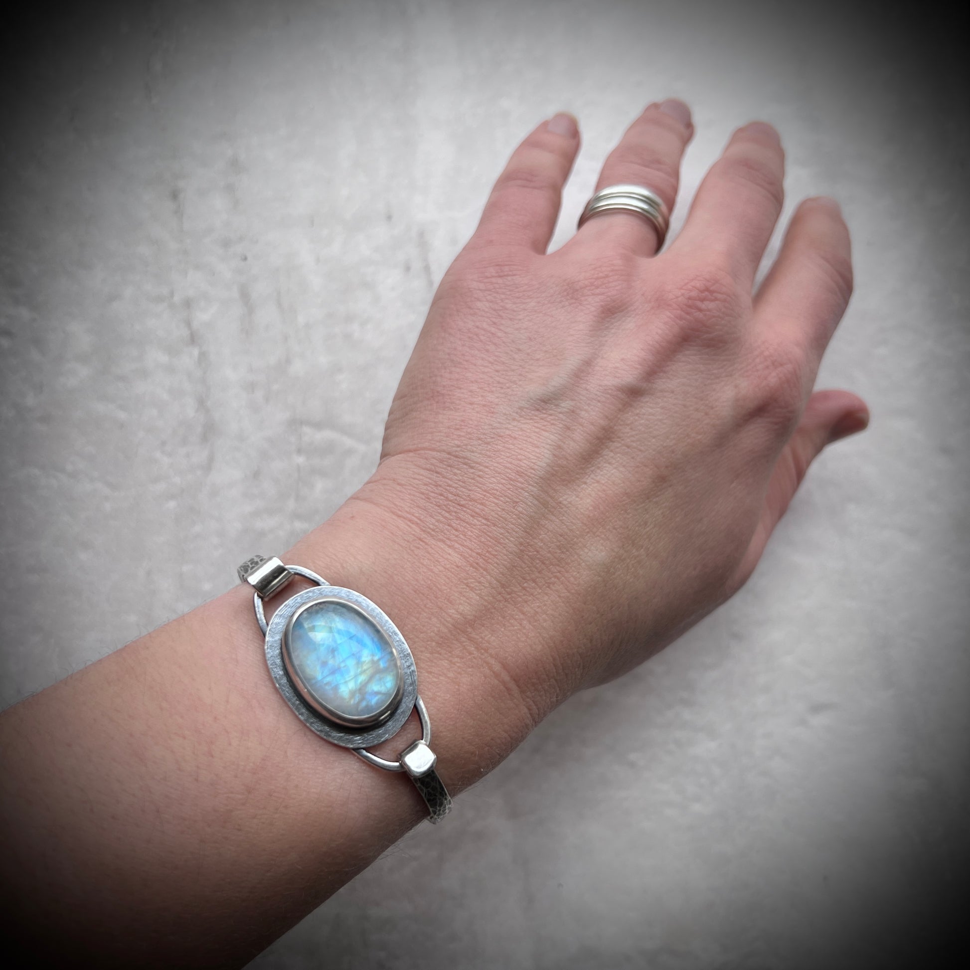 Rainbow Moonstone Sterling Silver Bracelet | Artisan Silver Cuff Bracelet