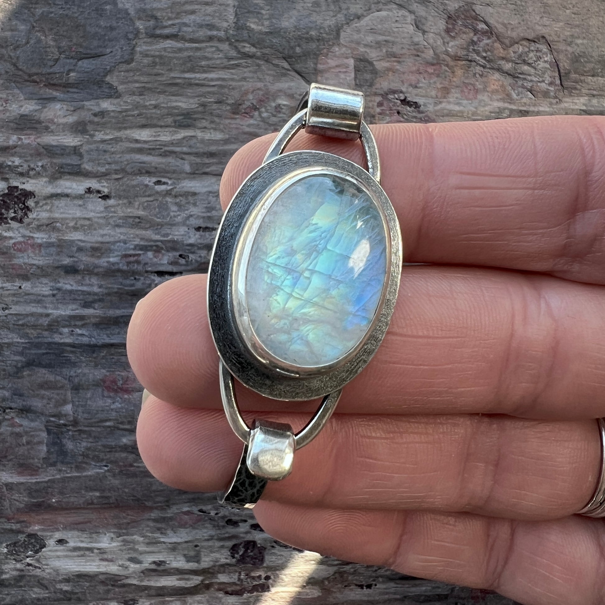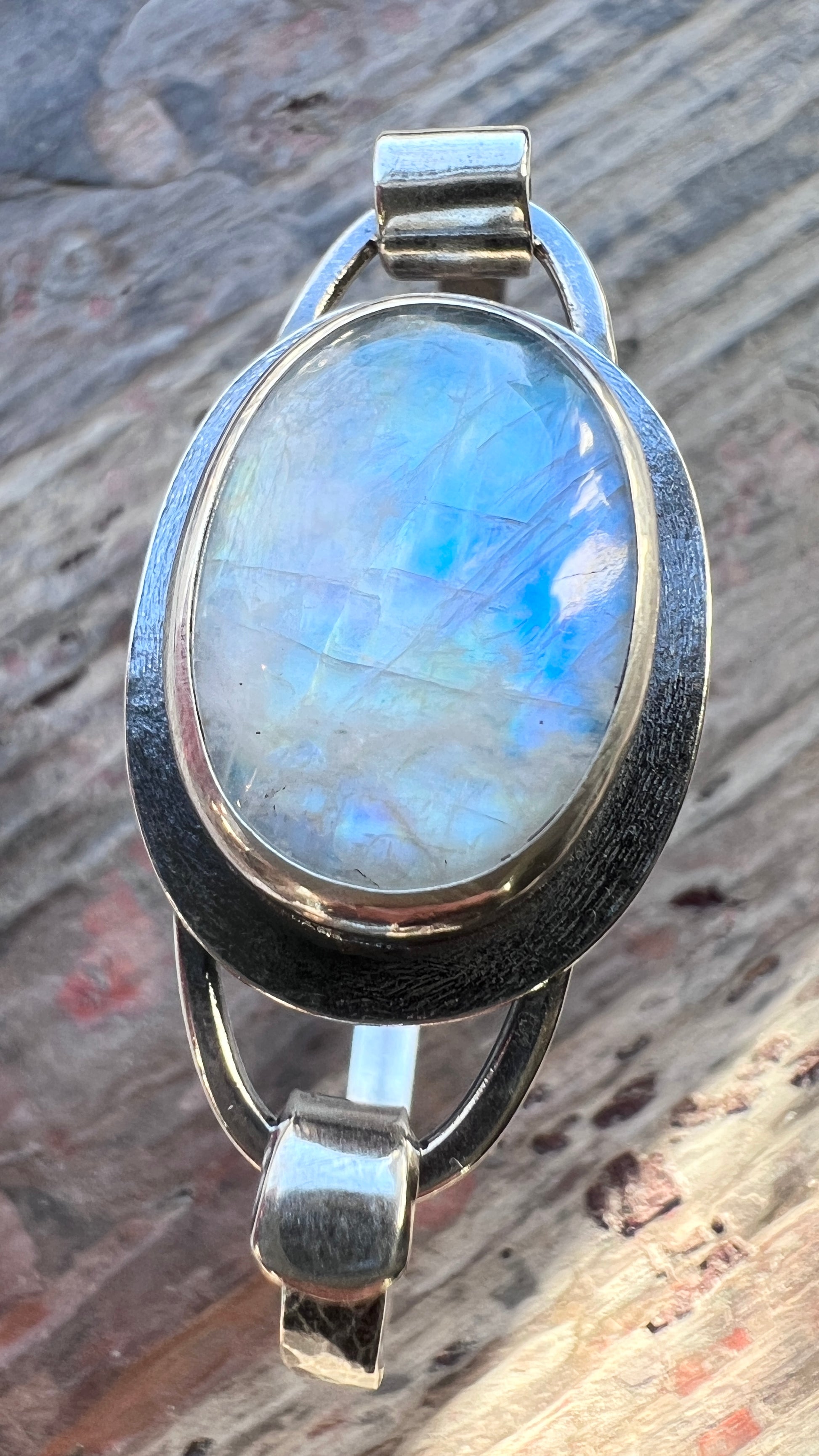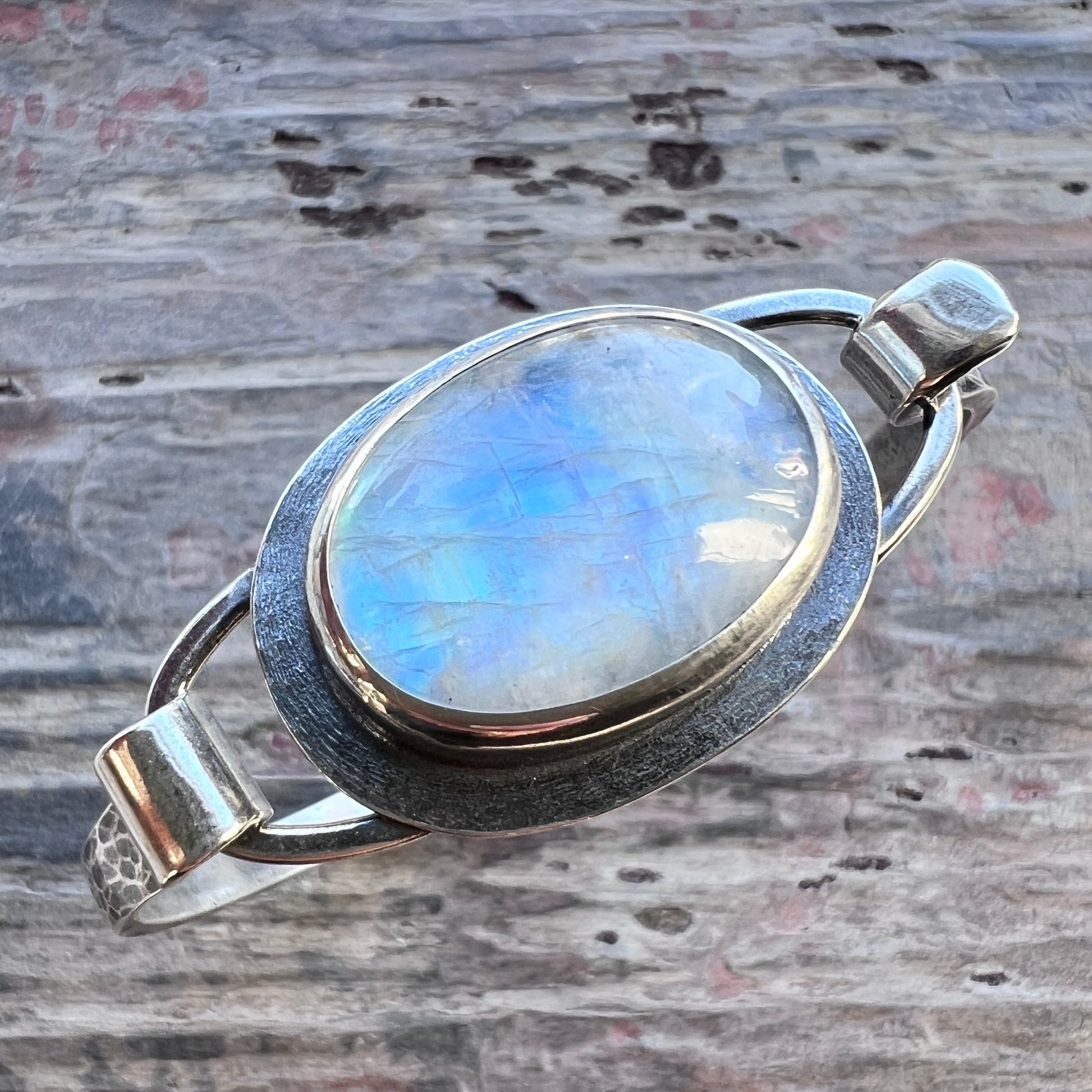 Rainbow Moonstone Sterling Silver Bracelet | Artisan Silver Cuff Bracelet