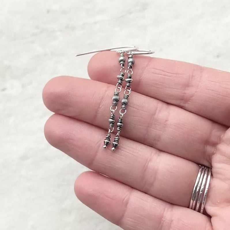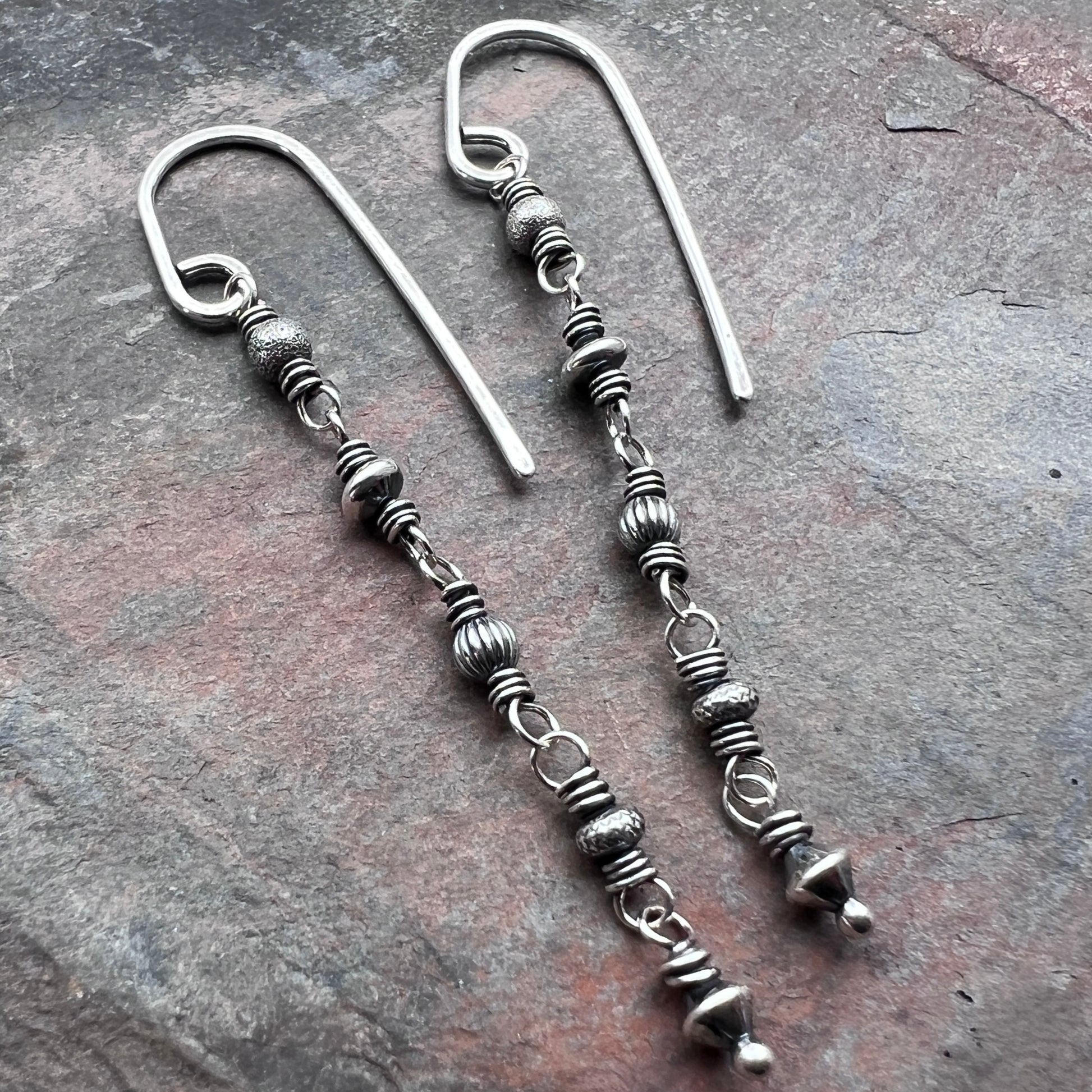 Sterling Silver Beaded Earrings | Wire-wrapped Lightweight Long Dangles