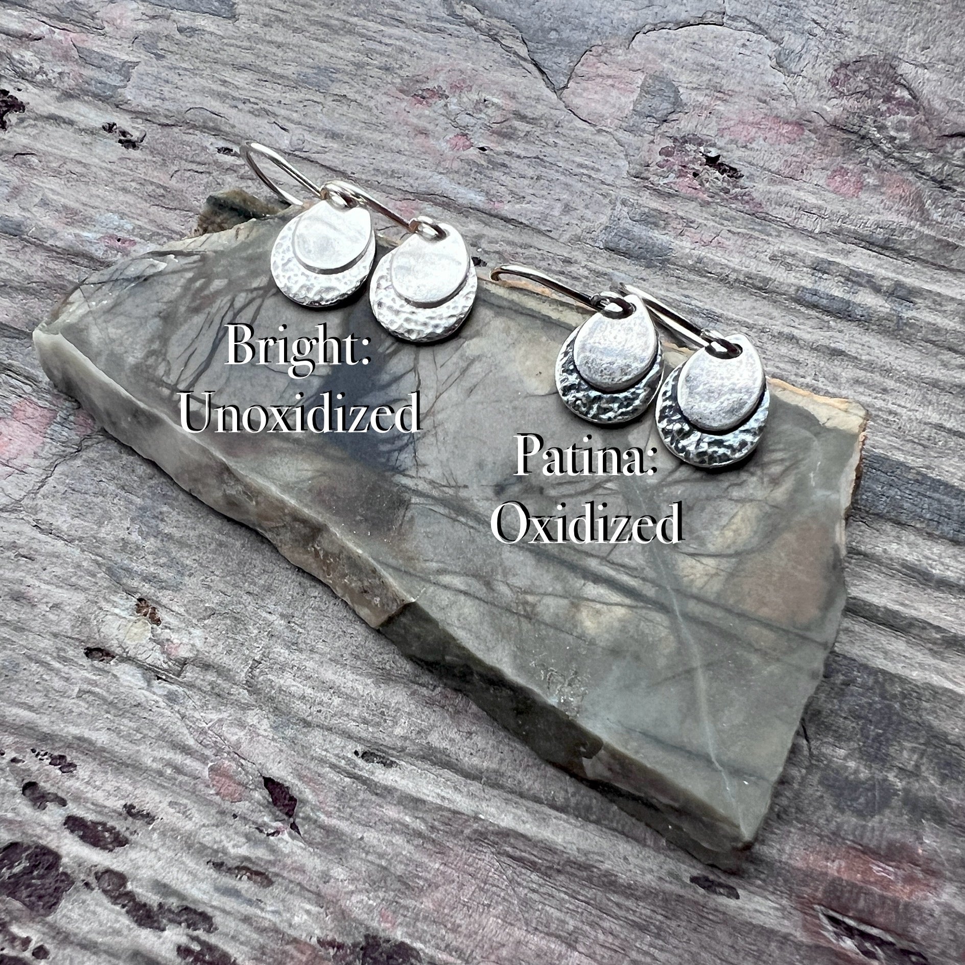 Select your desired finish when ordering. The earrings shown in the main photograph are in the 'Patina: Oxidized' finish.